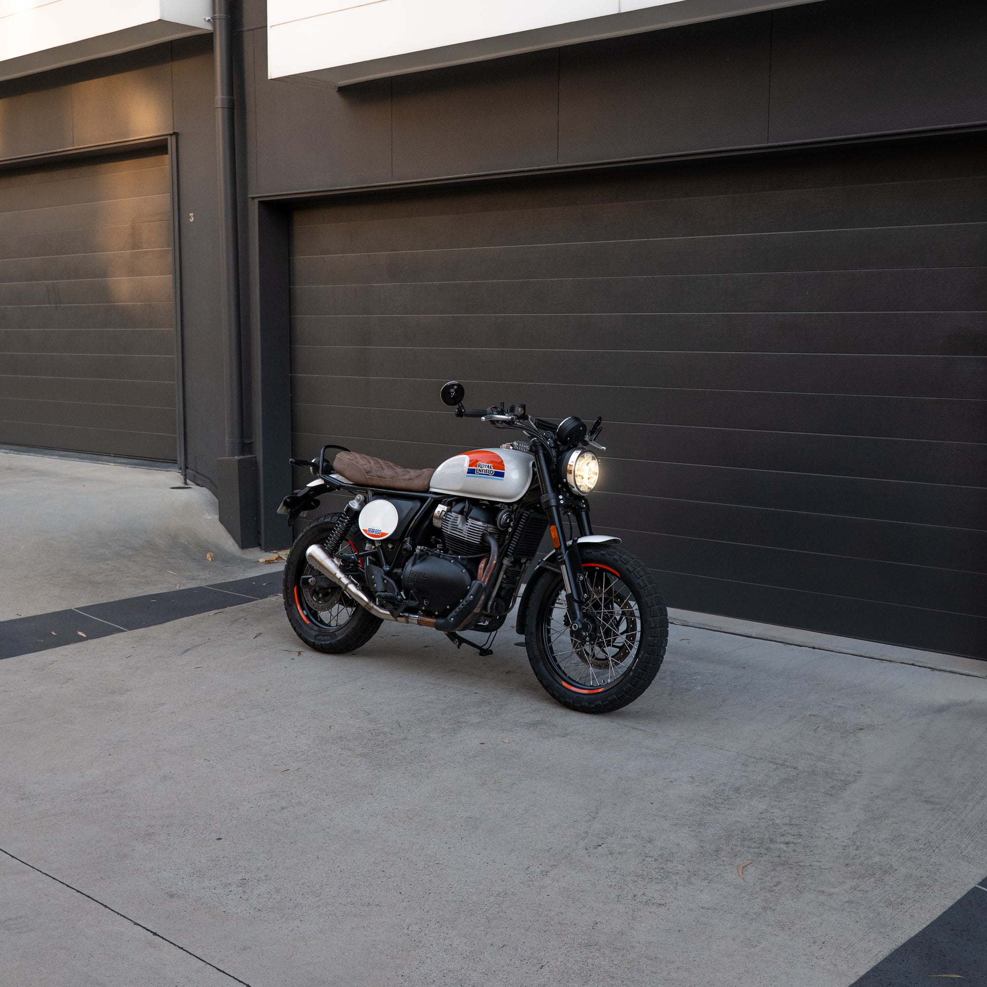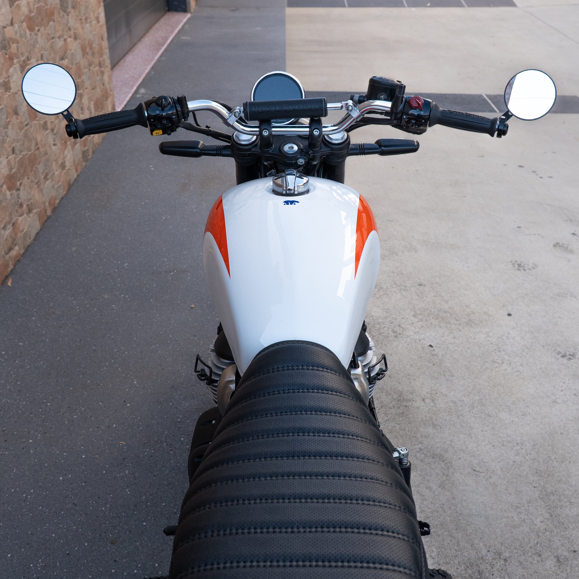 Our Bear 650 custom seat features either a hand-stitched diamond pattern on our distressed-brown Carrara vinyl, or a ribbed, perforated soft-touch vinyl on our Oxley design — both versions are framed with clean twin side panels that integrate seamlessly with the bike’s classic lines. It’s an understated yet transformative detail that highlights the Bear’s modern-retro styling while providing a truly bespoke look.
